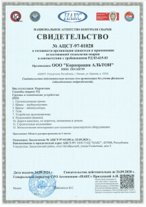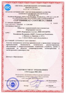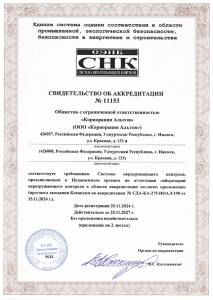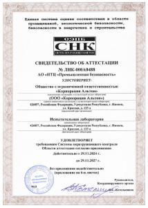 Свидетельство об аттестации испытательной лаборатории № ЛНК-000А0488 от 29.11.2024 г. Свидетельство о допуске к работам в области ремонта, наладки и технического обслуживания технических устройств, эксплуатируемых на опасных производственных объектах № 01-2022-1831168759-0118 01.01.2024г. Выписка из  реестра членов СРОА «Межрегионпроект»